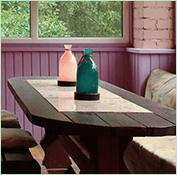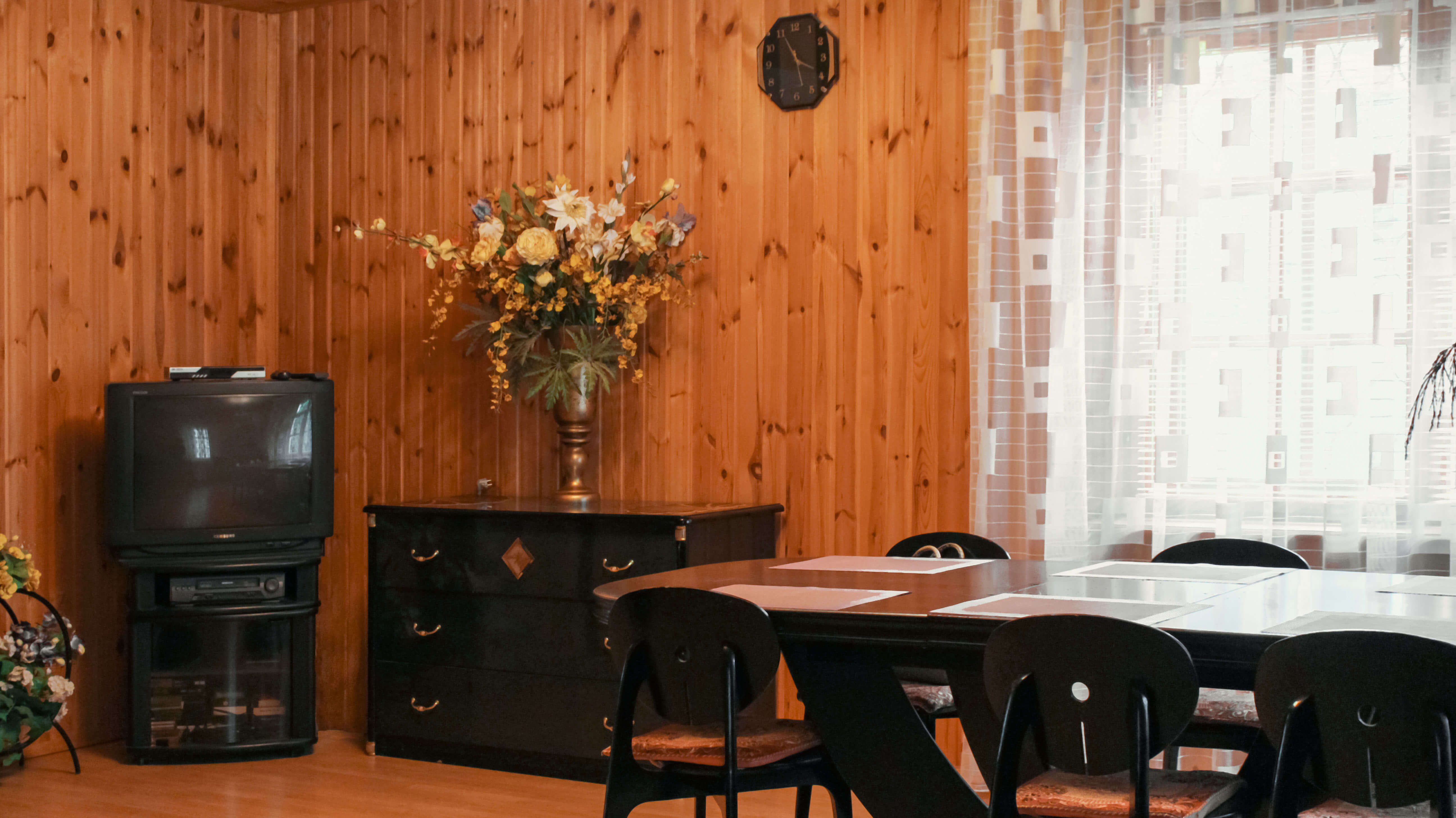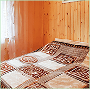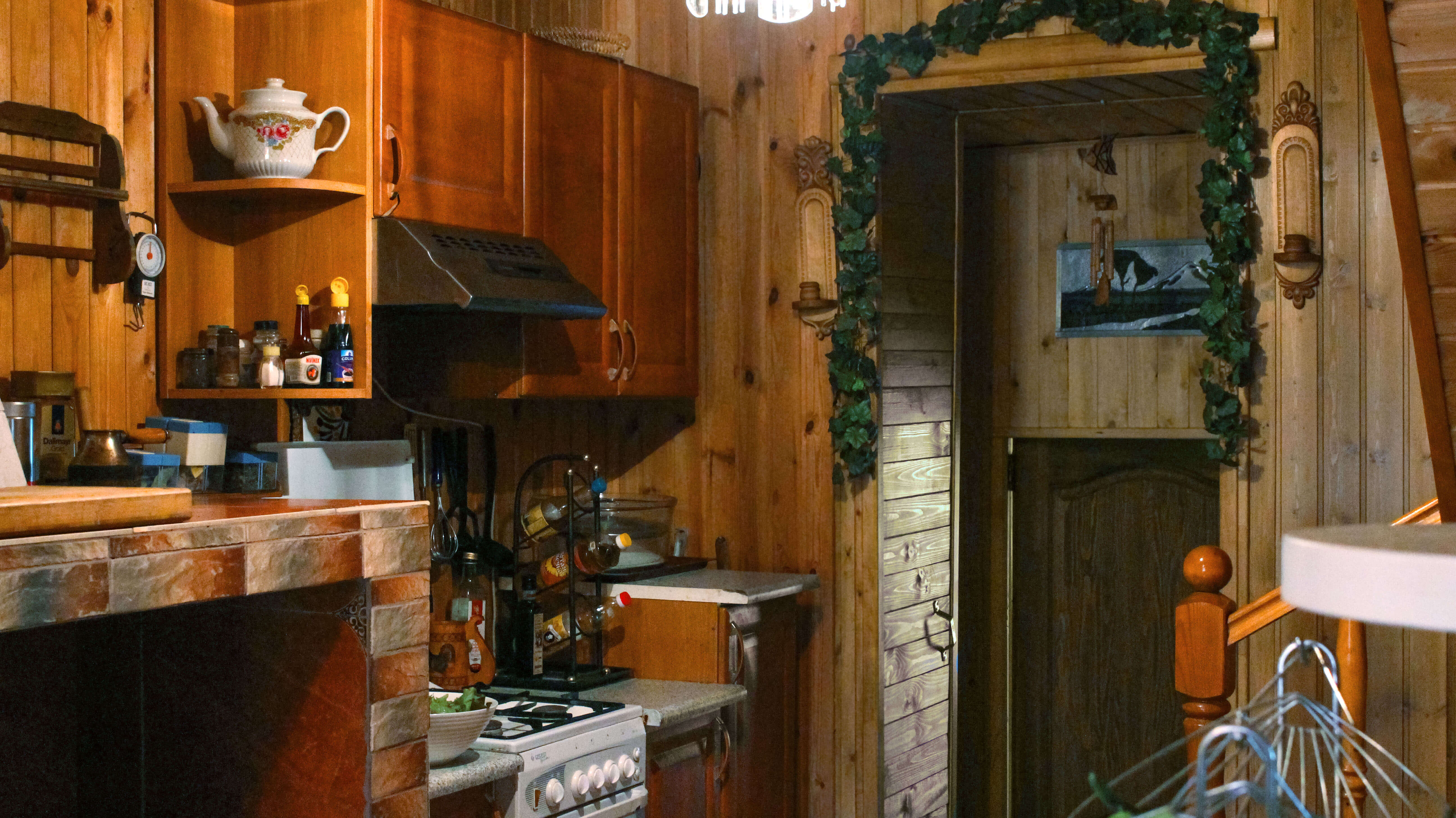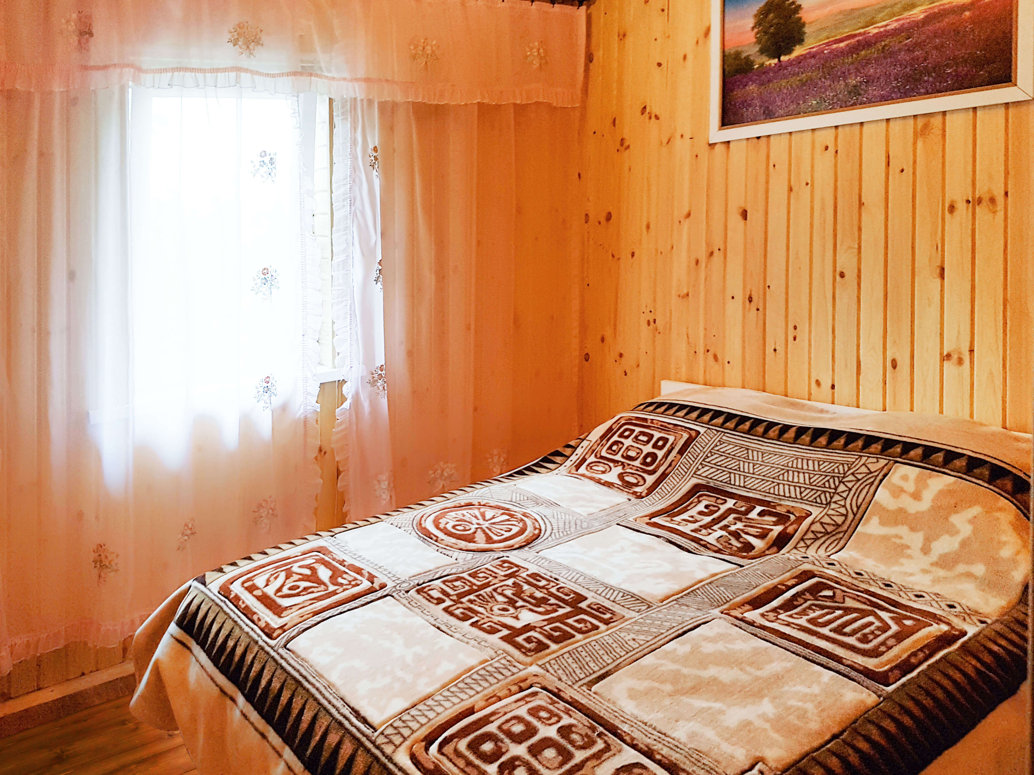 Нашим гостям мы предлагаем разместиться в двухэтажном доме, который обрадует теплой и уютной отделкой деревом, картинами, декором и цветочными композициями. В доме присутствует полноценная кухня с холодильником, плитой и чайником, где можно всё приготовить из своих продуктов.