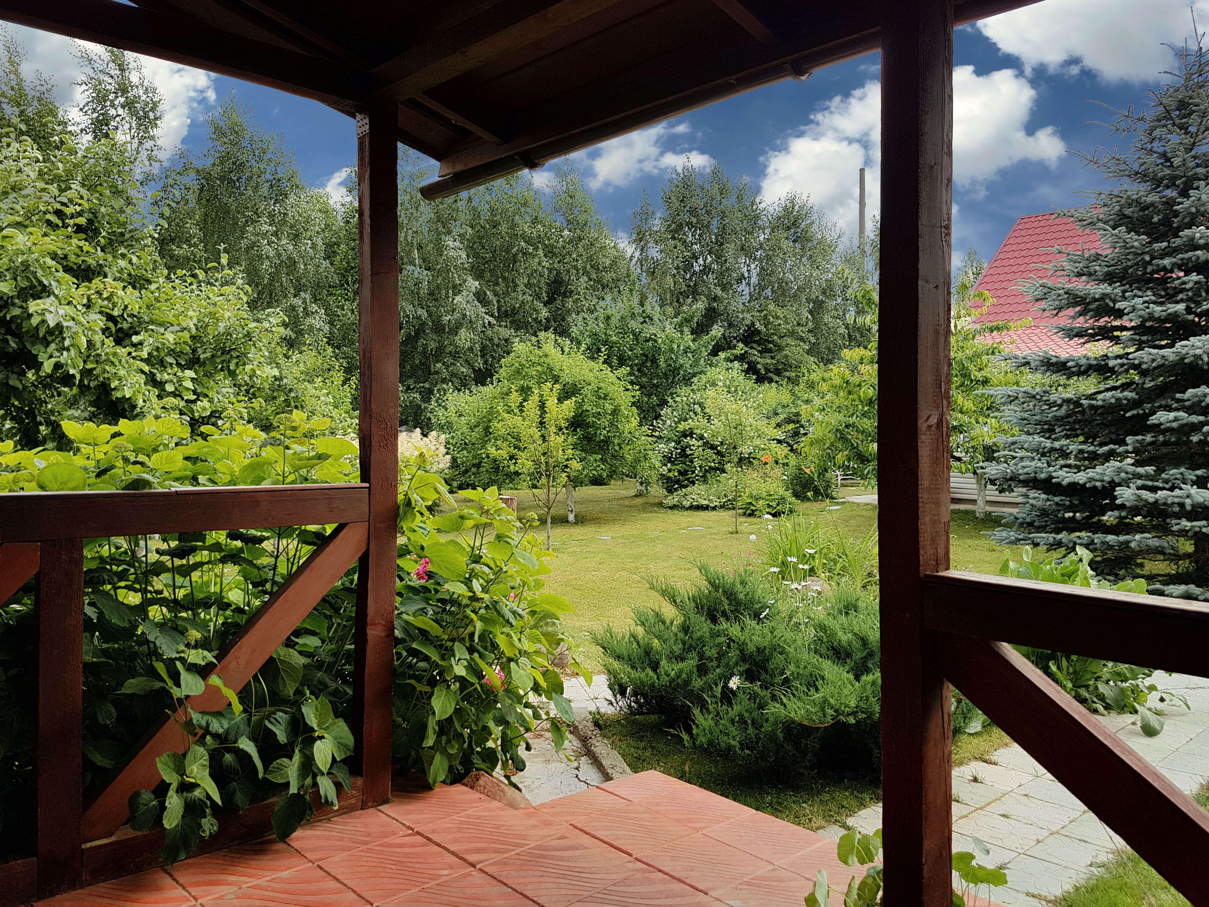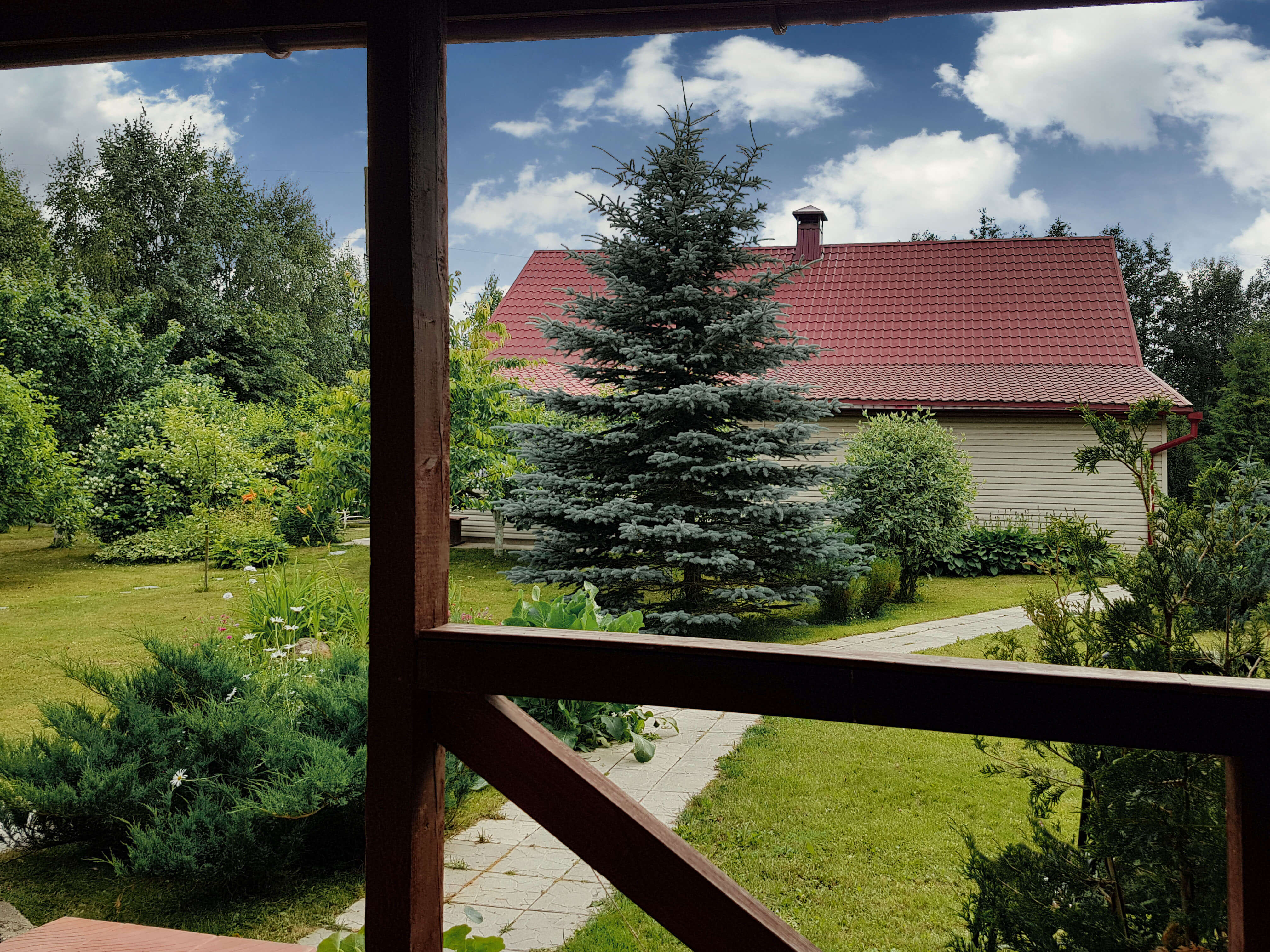 Загородный дом расположен в экологически чистом районе, на отдельно стоящем, утопающем в зелени участке в 20 соток земли, в 2 км от древнего города Заславль, и в 15 километрах от столицы.